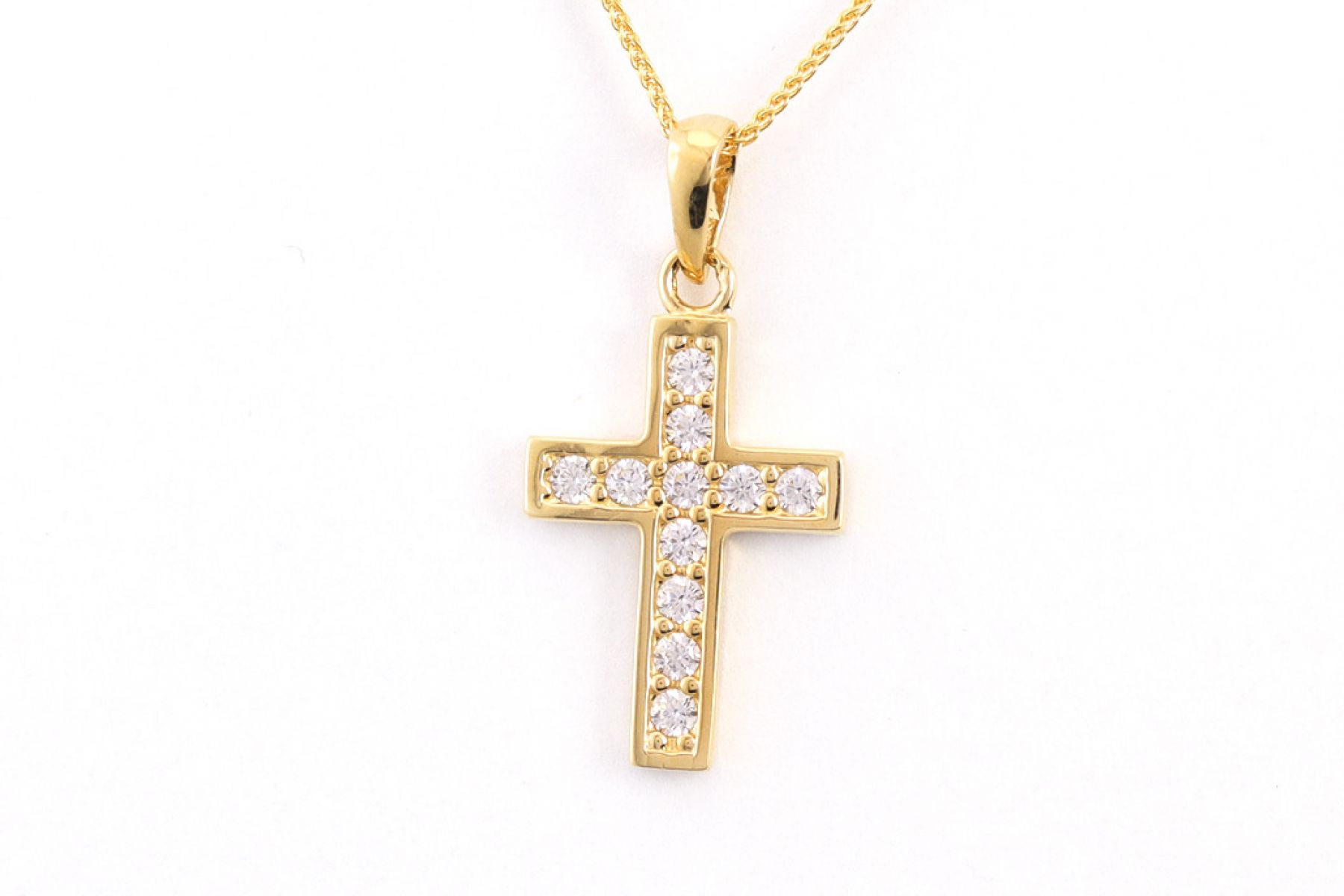 Ez a gyönyörű, apró fehér cirkónia kövekkel díszített arany kereszt azokhoz szól, akik két lábbal állnak a földön, és biztosan tudják: föntről mindig vigyáznak rájuk. Jó szívvel ajánljuk mindazoknak, akik bátran meg merik mutatni hitüket és belső erejüket.