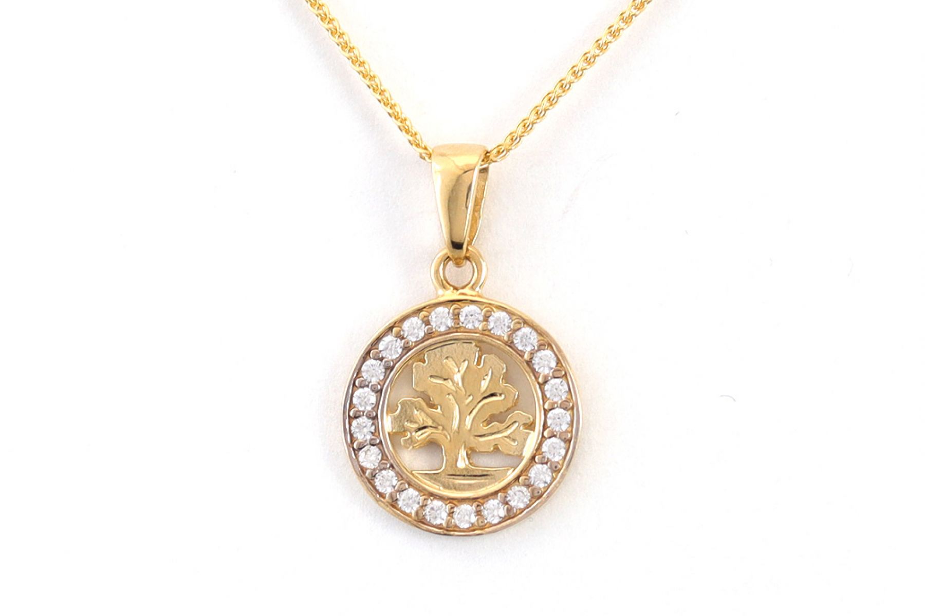 Ha ezt a 14 karátos aranyból készült, cirkónia kövecskékkel díszített medált viseled, Te is kapcsolatba kerülhetsz ezekkel az erős, ősi energiákkal. Ez a fa medál segíteni fog feltöltődni, amikor fáradtnak és levertnek érzed magad, amikor pedig erdőben jársz, felerősíti a színeket, formákat, és a szél hangjait a levelek között.