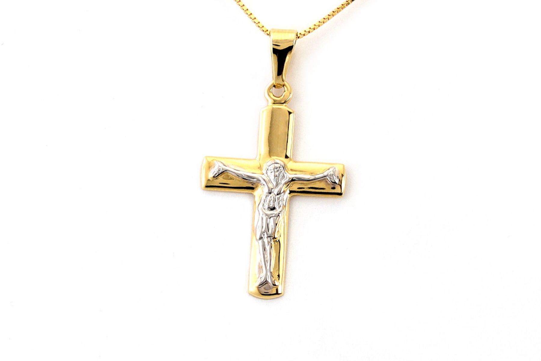 Ez a gyönyörű, kétféle aranyból készült feszület azokhoz szól, akik két lábbal állnak a földön, és biztosan tudják: föntről mindig vigyáznak rájuk. Jó szívvel ajánljuk mindazoknak, akik bátran meg merik mutatni hitüket és belső erejüket.