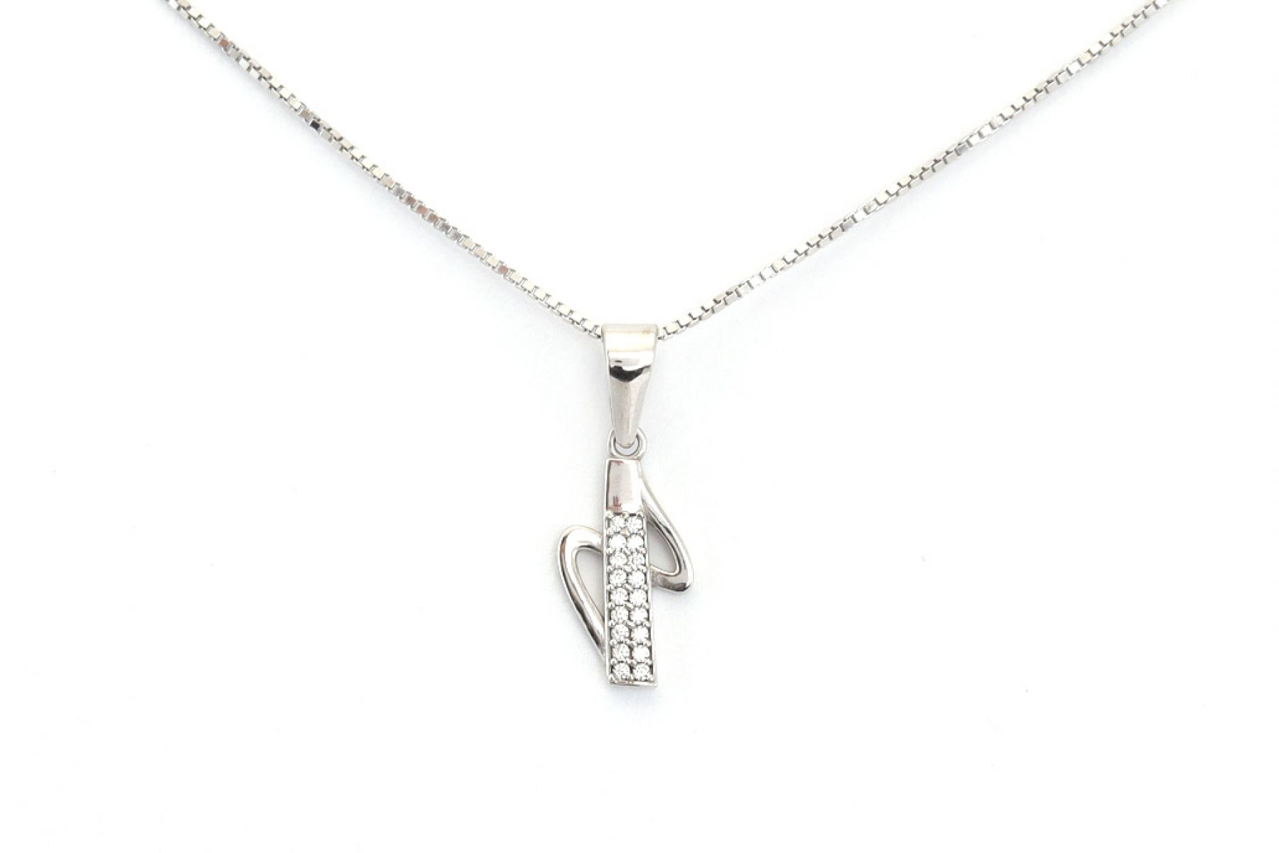 Modern, dinamikus, izgalmas, egyedi - ezekkel a szavakkal tudnánk a legjobban leírni ezt a 14 karátos fehér aranyból készült, fehér cirkónia kövecskékkel díszített elegáns medált.