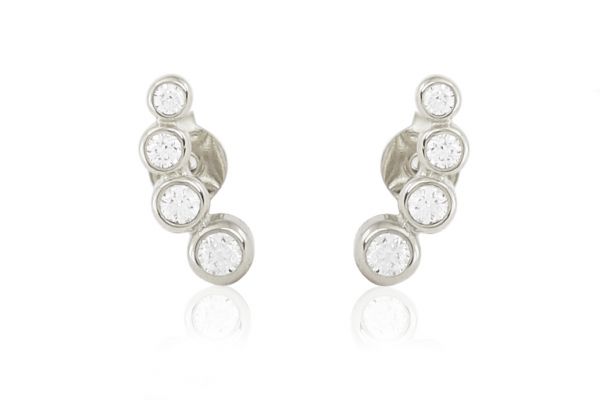 Egyszerre elegáns és varázslatosan ragyogó ez a három fehér cirkónia kövecskével díszített íves fehér arany fülbevaló.